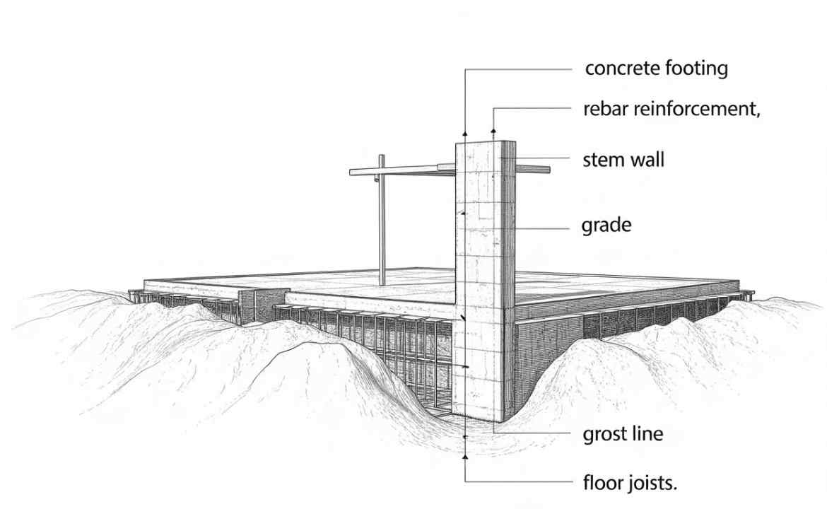 A footing and stem wall foundation is one of the most widely used raised foundation systems in residential construction. It includes two core components that work together to transfer the building’s weight safely into the soil: