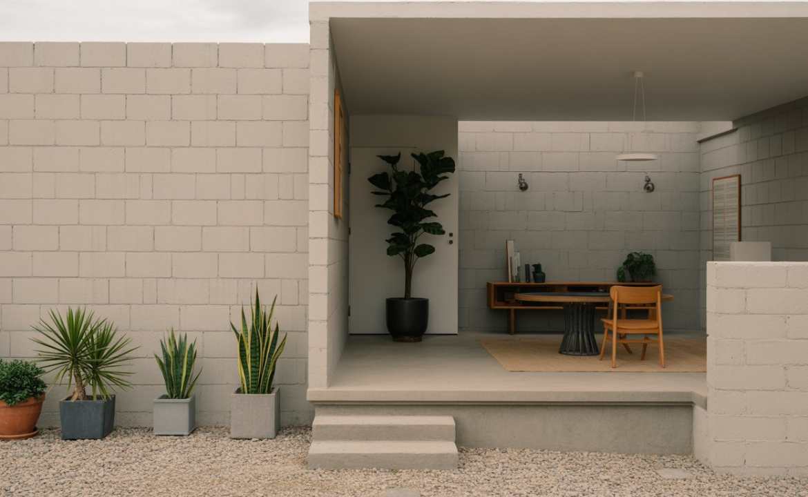 Many homeowners in the U.S. decorate cinder block walls by mixing textures. Combining wood, metal, and greenery enhances contrast and style. It’s a popular trend that brings balance and a welcoming vibe to outdoor areas.